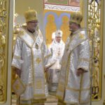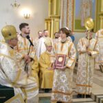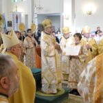 Після заамвонної молитви архієреї склали святкові привітання. Священнослужителі від інших двох єпархій нашої митрополії подарували нашій єпархії євхаристійний набір.