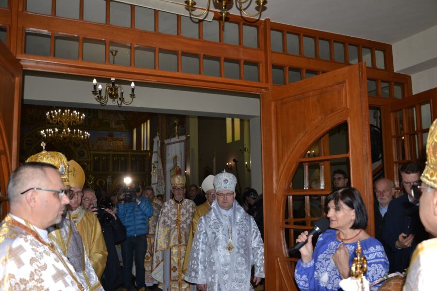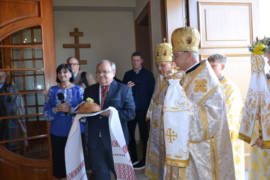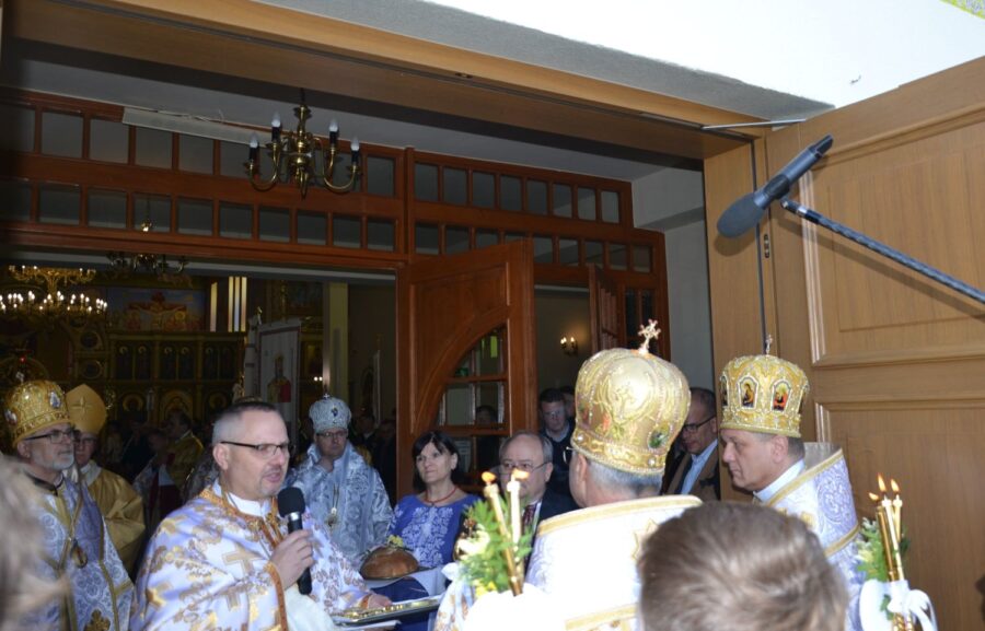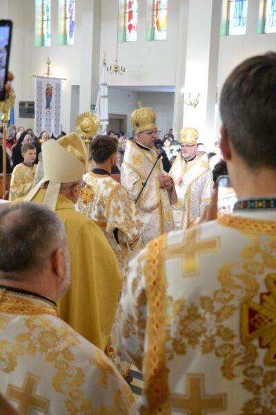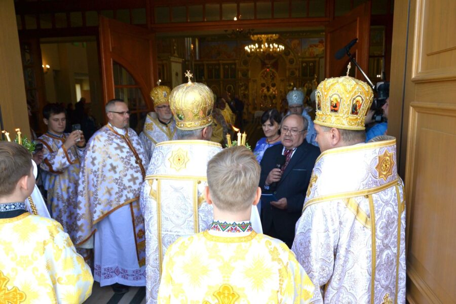 На порозі храму наш настоятель, протоієрей Іван Галушка, привітав високопреосвященнішого архиєпископа Євгена, митрополита Перемисько-Варшавського, та попросив його звернутися до спільноти з Божим словом. Після цього представники парафії радо привітали всіх прибулих архієреїв.