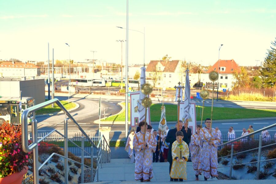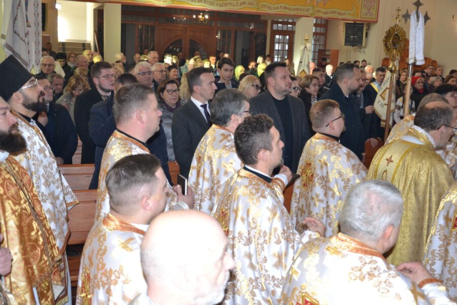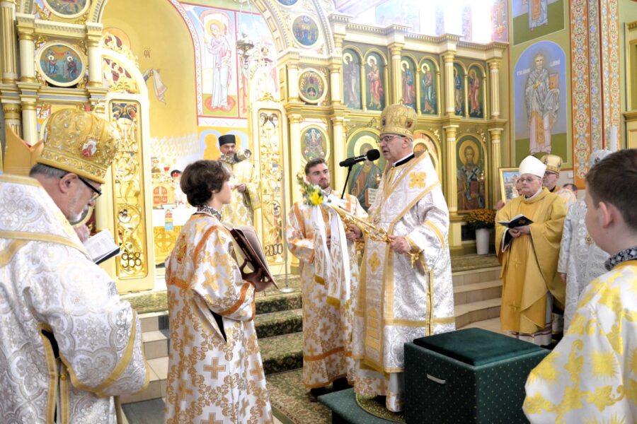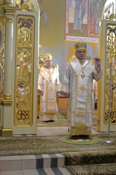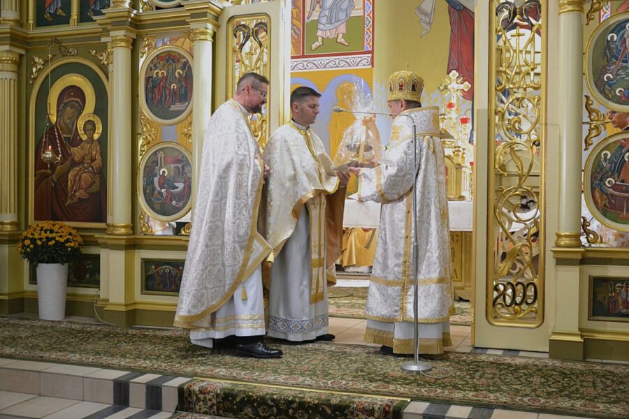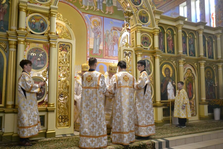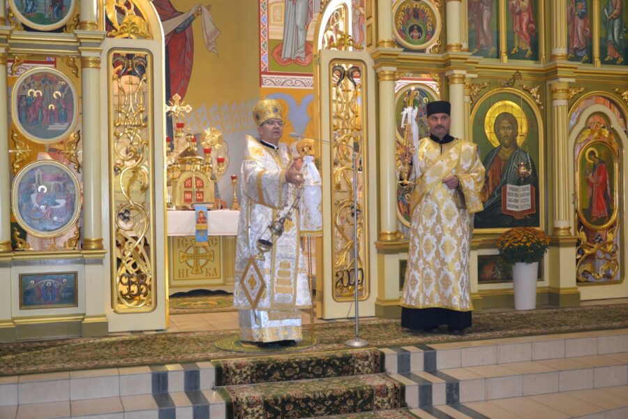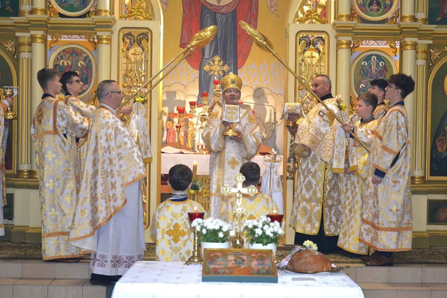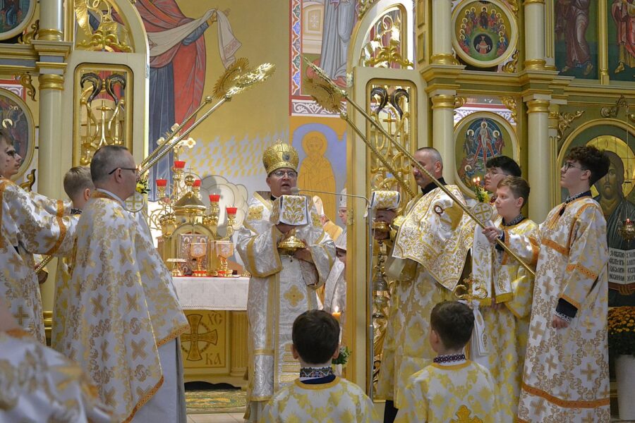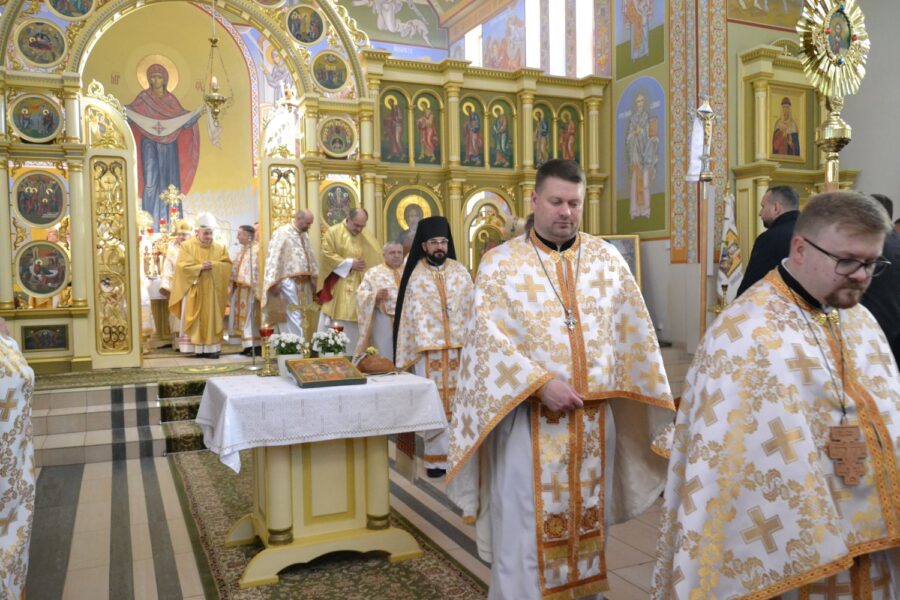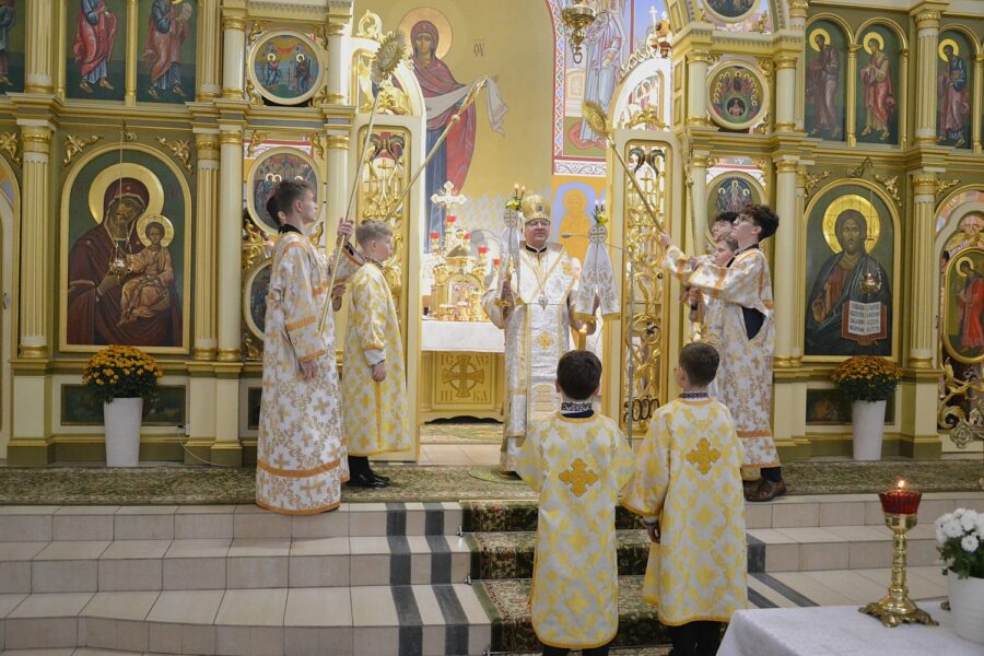 Далі розпочалася урочиста Архиєрейська Божественна Літургія, яку очолив високопреосвященніший архиєпископ Євген, митрополит Перемисько-Варшавський, у співслужінні: Преосвященнішого Аркадія, Єпископа Ольштинсько-Ґданського, Преосвященнішого Володимира, Єпископа Вроцлавсько-Кошалінського, Преосвященного Марюша, Єпископа-Помічника Вроцлавсько-Кошалінського