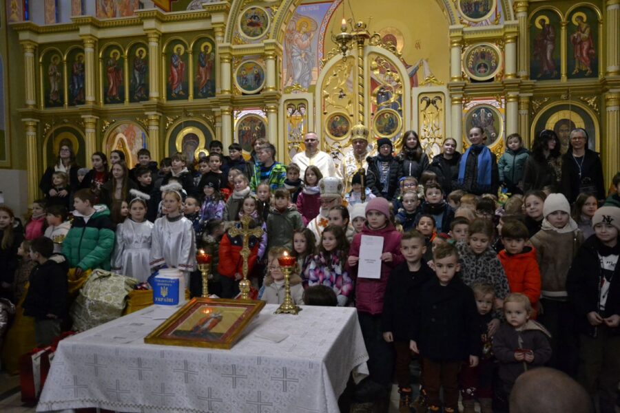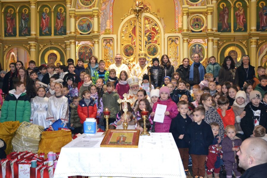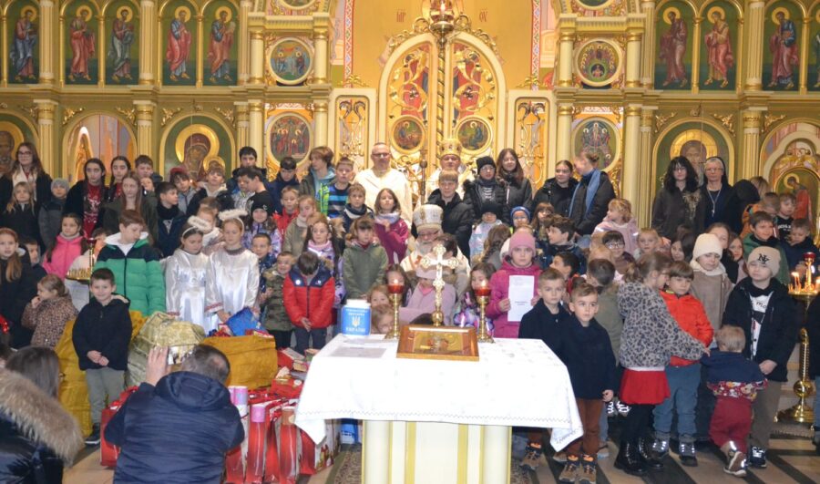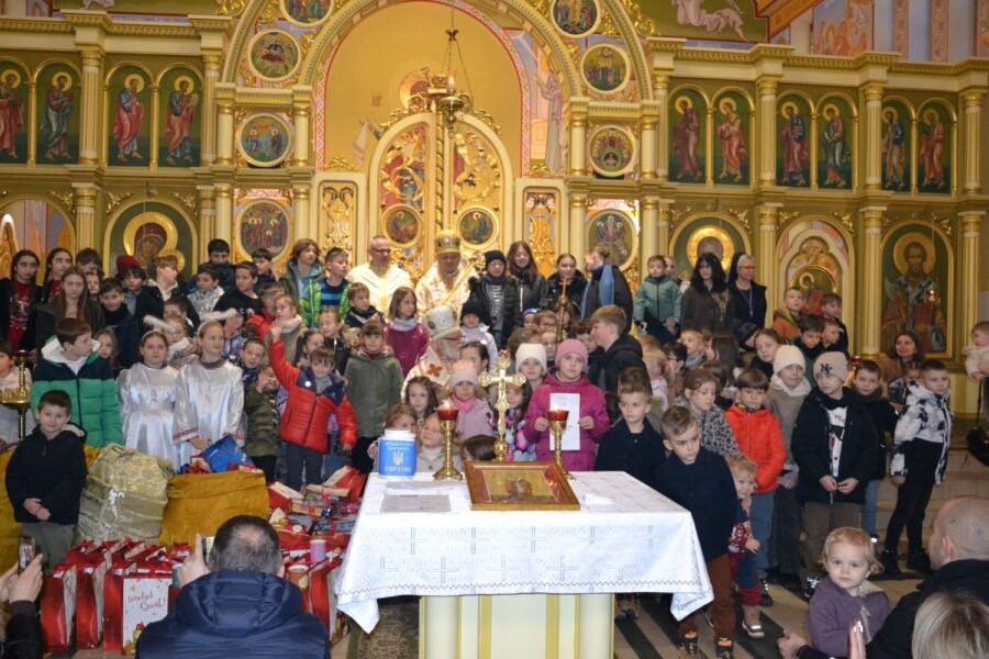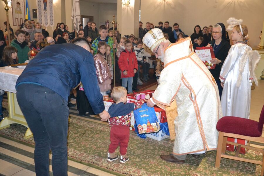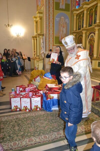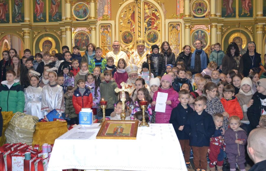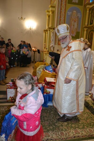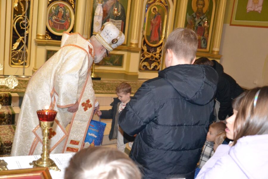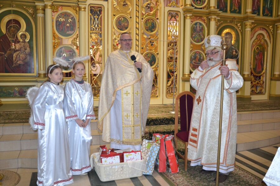 Службу Божу очолив Владика Кир Аркадій, вспулслужив протоієрей о. Іван, парох Ольштинської парафії. Літургію доповнив дитячий хор під керівництвом сестри Вікторії та п. Андрія Фараньчука. Після завершення Cлужби Божий, до церкви увійшов через головний вхід Миколай з ангелами і, звичайно ж, з подарунками.