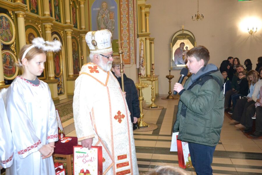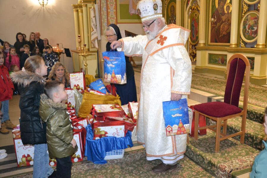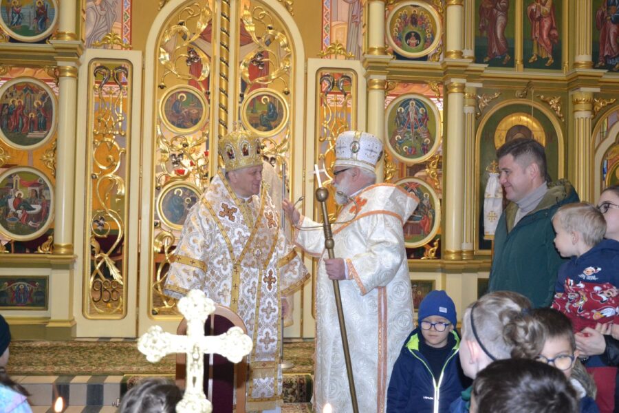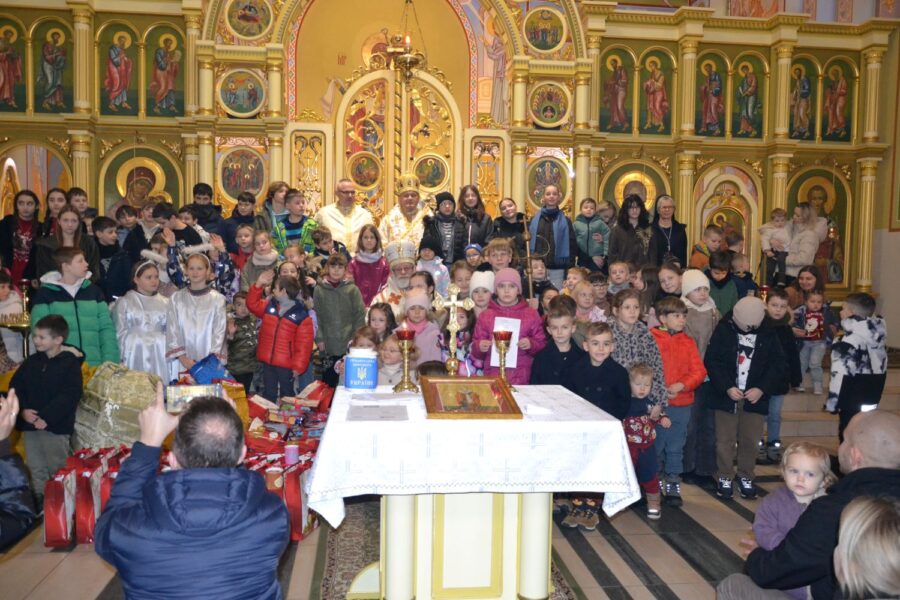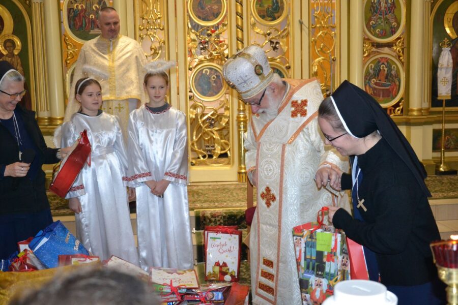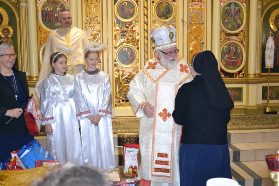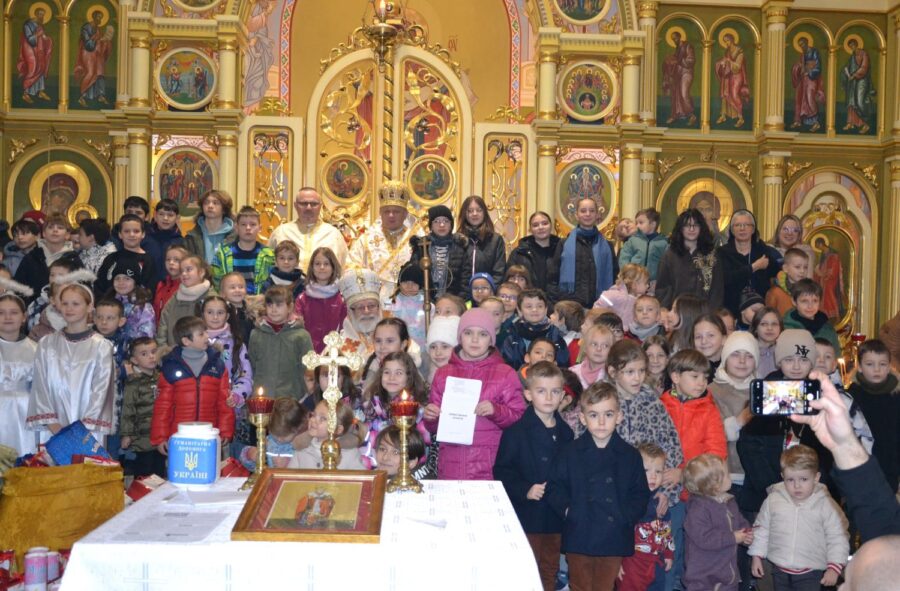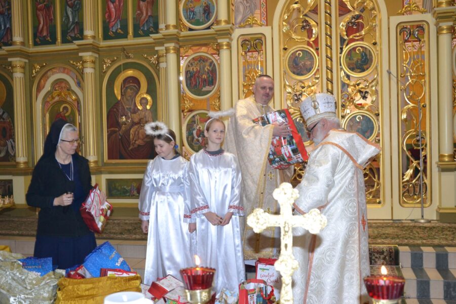 Службу Божу очолив Владика Кир Аркадій, вспулслужив протоієрей о. Іван, парох Ольштинської парафії. Літургію доповнив дитячий хор під керівництвом сестри Вікторії та п. Андрія Фараньчука. Після завершення Cлужби Божий, до церкви увійшов через головний вхід Миколай з ангелами і, звичайно ж, з подарунками.