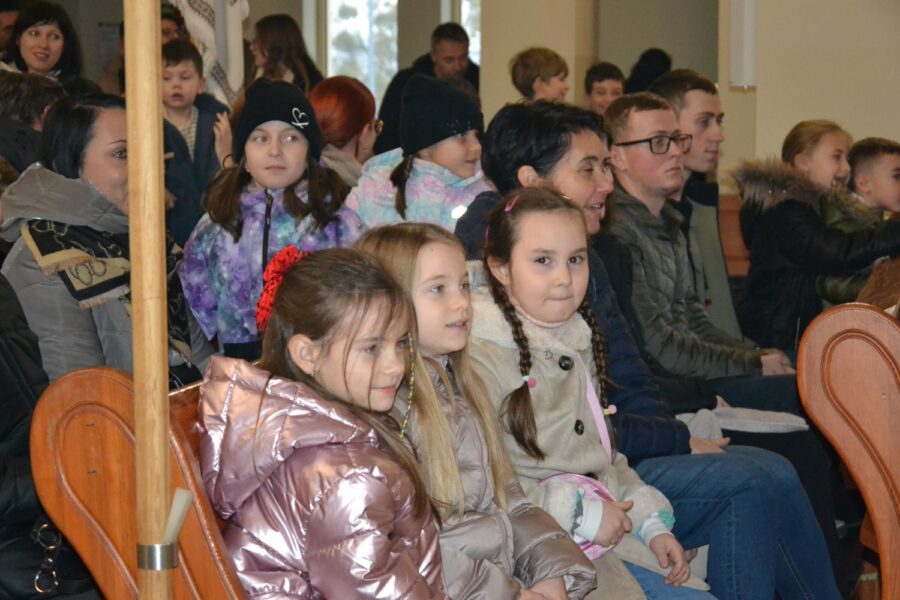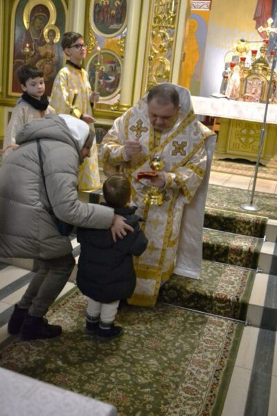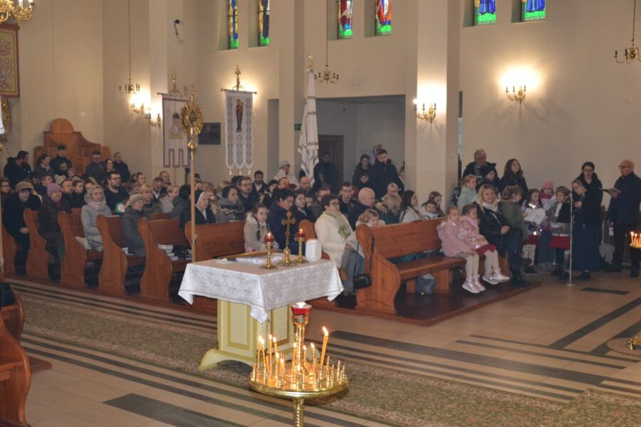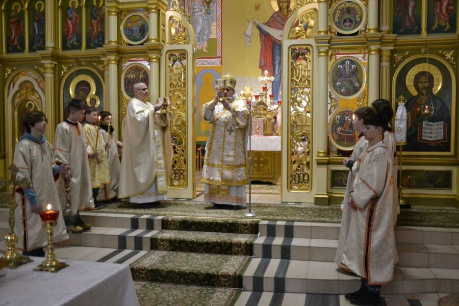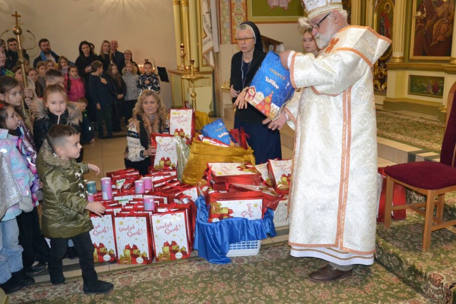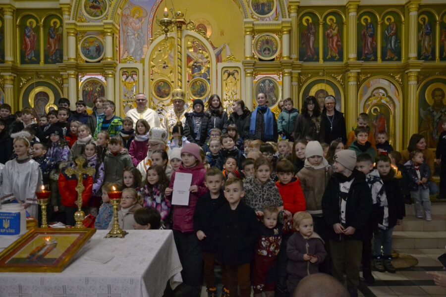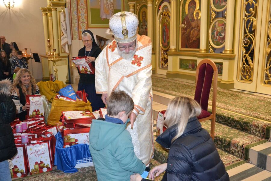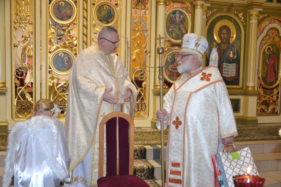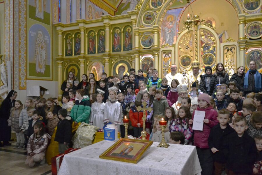Службу Божу очолив Владика Кир Аркадій, вспулслужив протоієрей о. Іван, парох Ольштинської парафії. Літургію доповнив дитячий хор під керівництвом сестри Вікторії та п. Андрія Фараньчука. Після завершення Cлужби Божий, до церкви увійшов через головний вхід Миколай з ангелами і, звичайно ж, з подарунками.