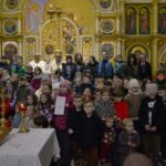 Перед вирyшенням в подальшу подорож, Св. Миколай сфотографувався з юними парафіянами.