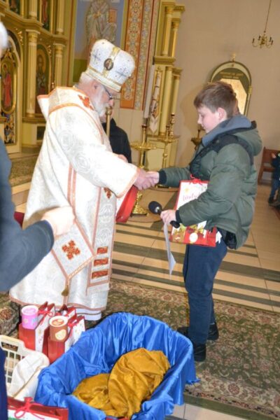 Настав довгоочікуваний момент дарування подарунків. Діти чекали цього часу цілий рік.. Кожен юний парафіянин вийшов з церкви зі своім подарунком, який особисто вручив йому Святий Миколай.