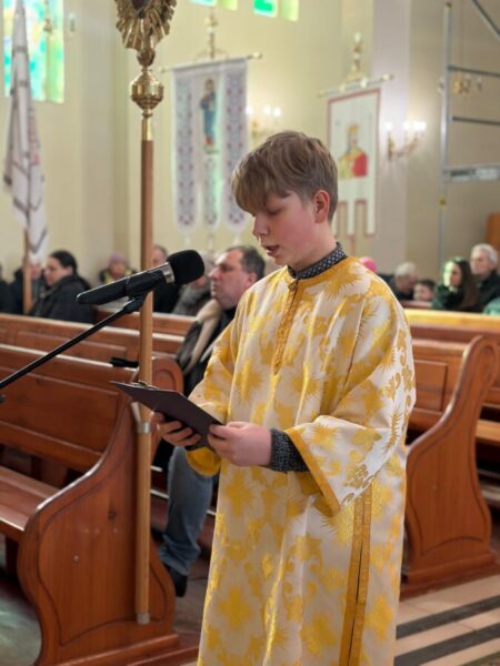 За доброю традицією, коли Літургія звершується з особливою участю дітей, Апостола співає хтось із них. Цього разу це служіння виконав наш прислужник Михайло.