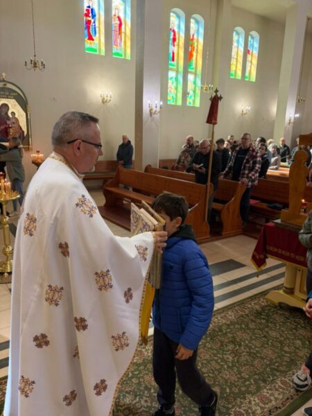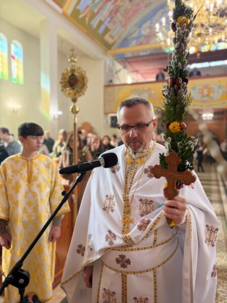 Під час проповіді отець наголосив, що Великий піст у візантійській традиції триває сорок днів і є часом внутрішнього очищення, що охоплює дух, тіло і розум та готує людину до Пасхи. Як він підкреслив, цей період уже завершився, а Церква увійшла у два великі й радісні свята, Лазареву суботу і Вхід Господній в Єрусалим, які відкривають пасхальну перспективу перемоги над смертю. Христос входить як Цар, який свідомо йде на страждання, але передусім перемагає смерть, і водночас, як зауважив проповідник, має щоразу входити і до серця кожного з нас.