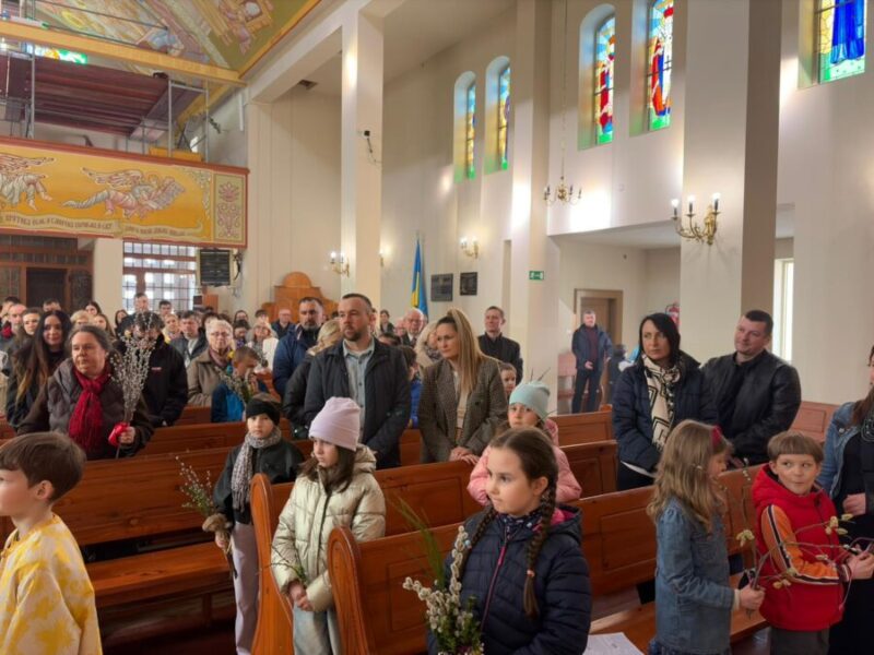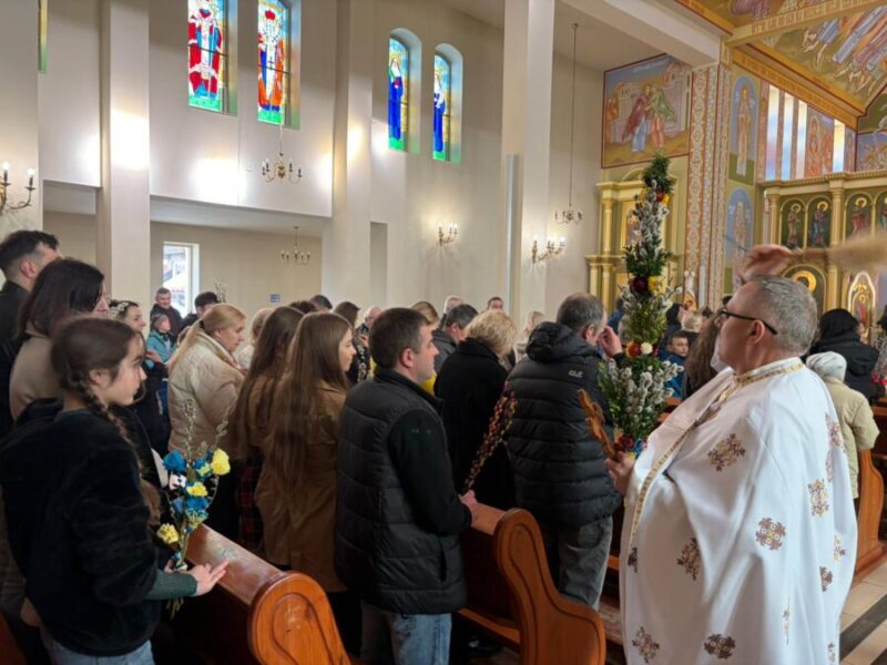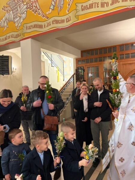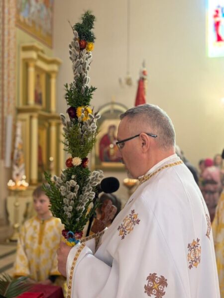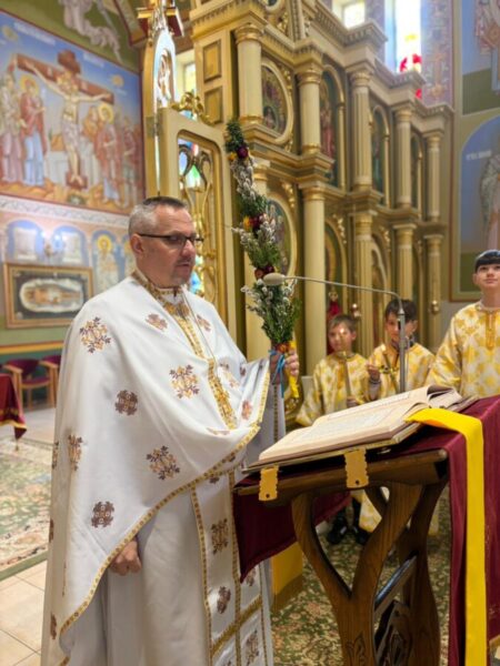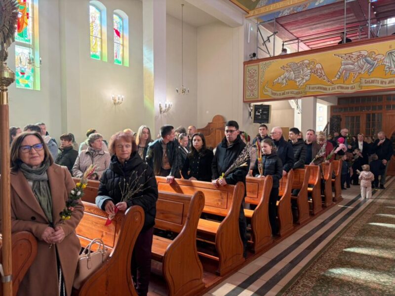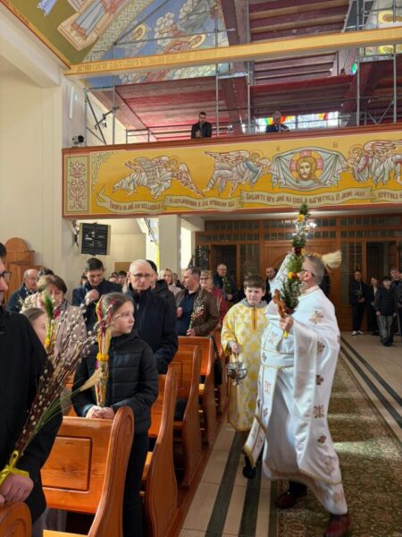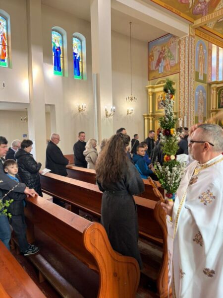 У Квітну неділю, у свято Входу Господнього в Єрусалим, Божественну Літургію очолив протоієрей Іван Галушка. На богослужіння прибуло багато вірних, які принесли із собою вербу, лозу та інші весняні віття.