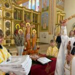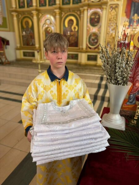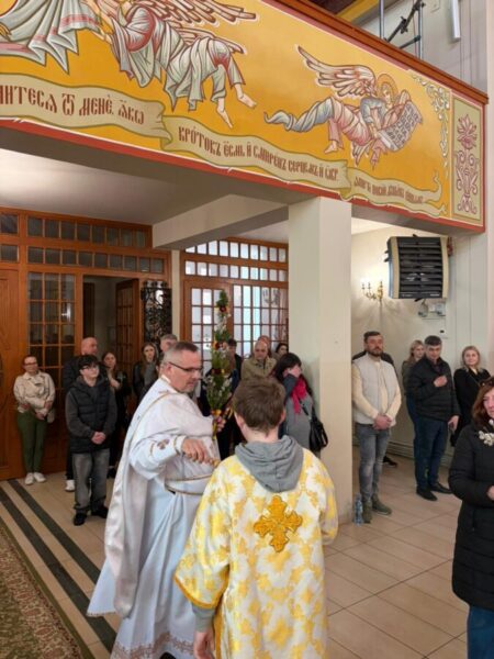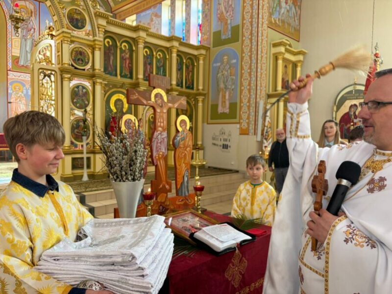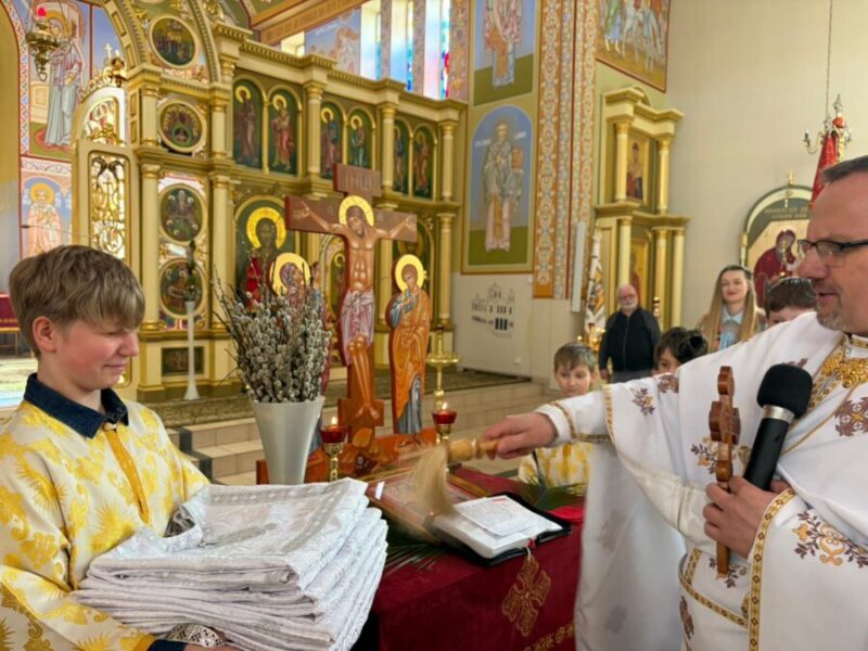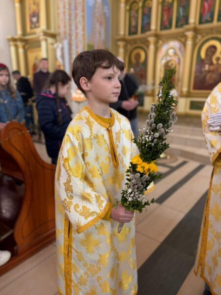Після заамвонної молитви були прочитані молитви на освячення і освячено принесені віття. Також було освячено нові білі, пасхальні стихарі, придбані для парафії за пожертви вірних, зібрані під час різдвяного мирування.