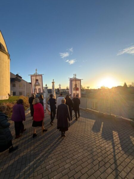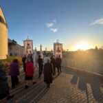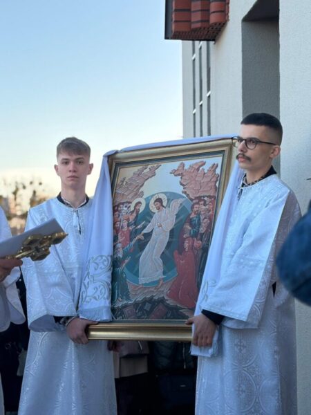 Після перенесення плащаниці на престол відбулася хресна хода навколо храму під звук дзвонів. Вона звершувалася вліво, у напрямку сходу сонця, звідки приходить світло Воскресіння. Цього року під час ходи вірні стали свідками сходу сонця, яке перемагало темряву, що стало глибоким знаком Христа, Який смертію смерть поправ і сущим во гробіх живот дарував.