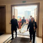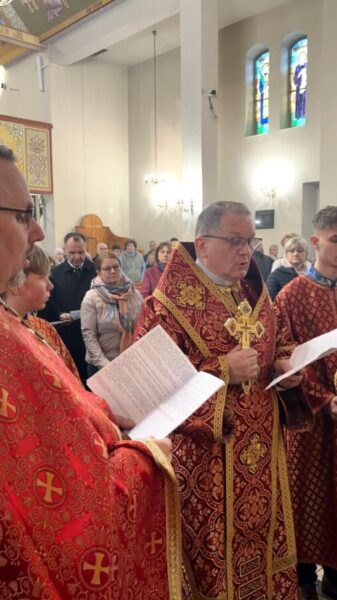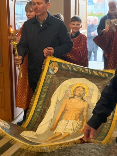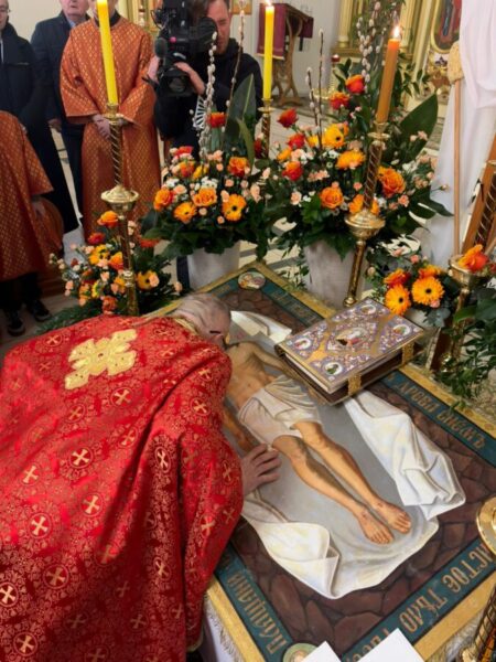 У Страсну п’ятницю вірні зібралися в катедральному соборі на одне з найглибших богослужінь року — Вечірню з виставленням плащаниці. Це богослужіння вводить у таємницю погребіння Христа: Церква не лише згадує Його страждання і смерть, але вже споглядає їх у світлі майбутньої перемоги над смертю. Плащаниця, винесена на середину храму, стає знаком присутності покладеного до гробу Спасителя, перед Яким вірні з благоговінням моляться і поклоняються.