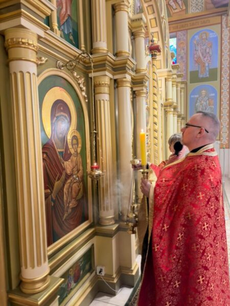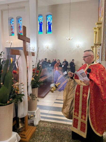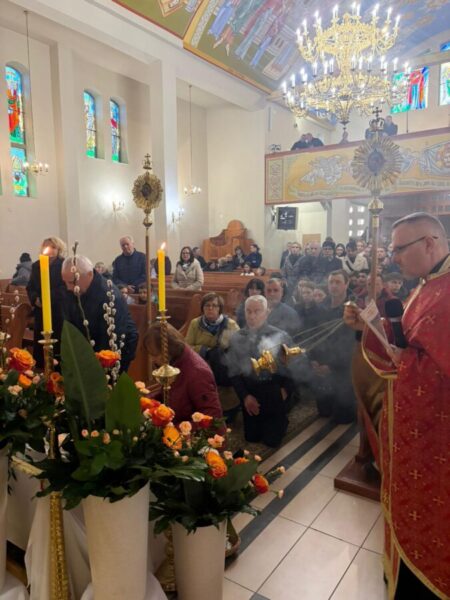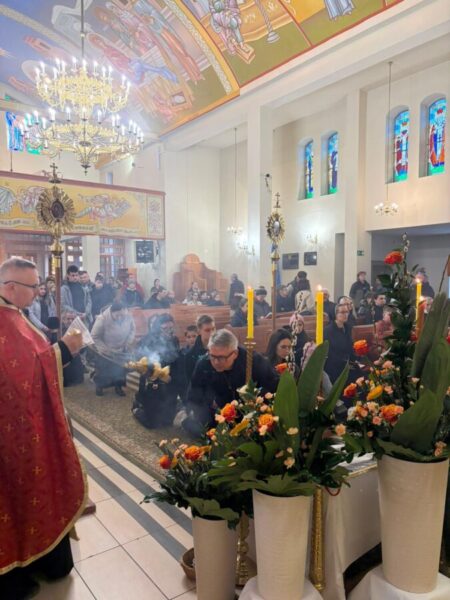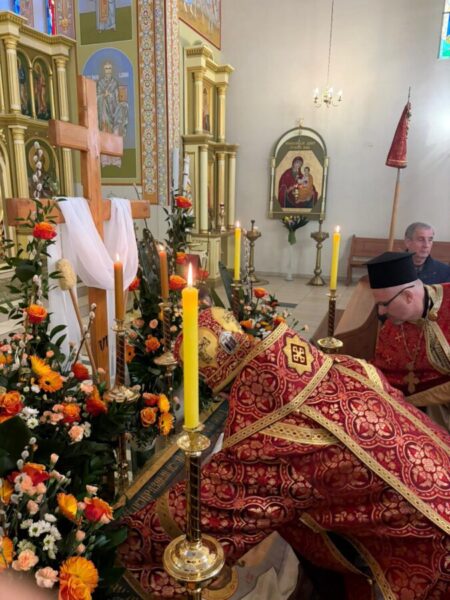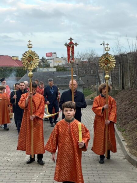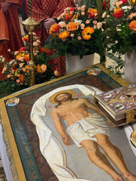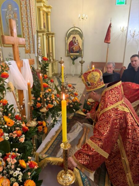Богослужіння відслужили владика Аркадій та протоієрей Іван Галушка. Після Вечірні відбулася хресна хода навколо храму з плащаницею, яку несли достойні парафіяни. Ходу провадив свічконосець, за ним несли хрест, патериці, плащаницю та Євангеліє; далі йшло духовенство і вірні. Усе відбувалося в особливій тиші під звук калаток, що підкреслює скорботний і водночас зосереджений характер цього дня.