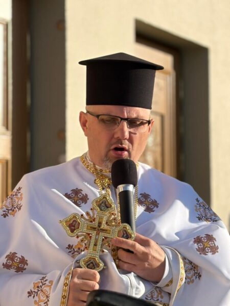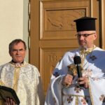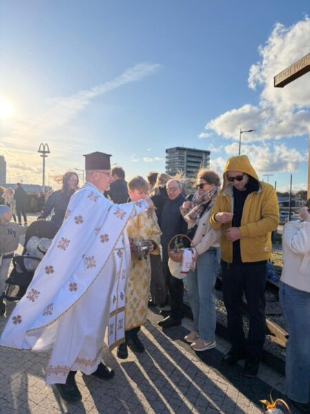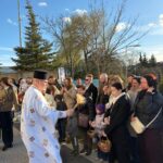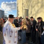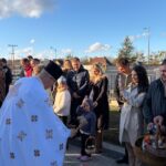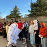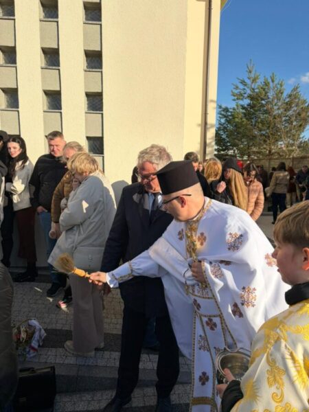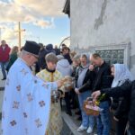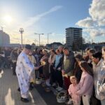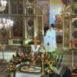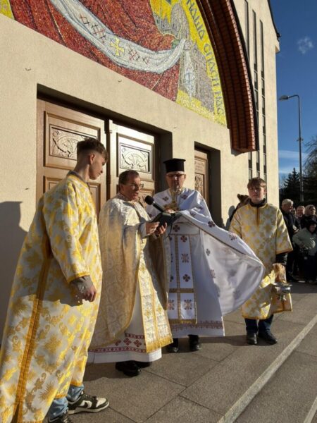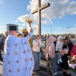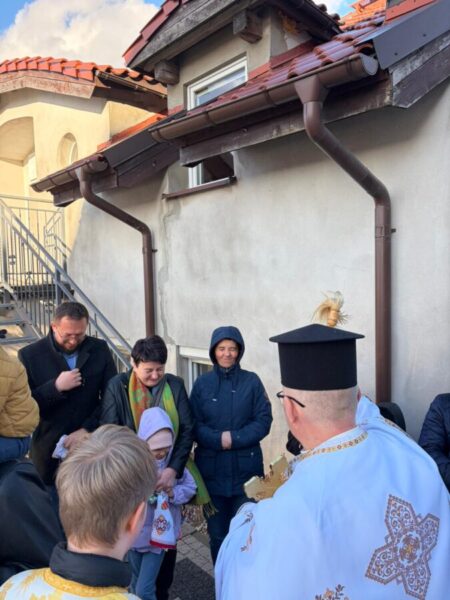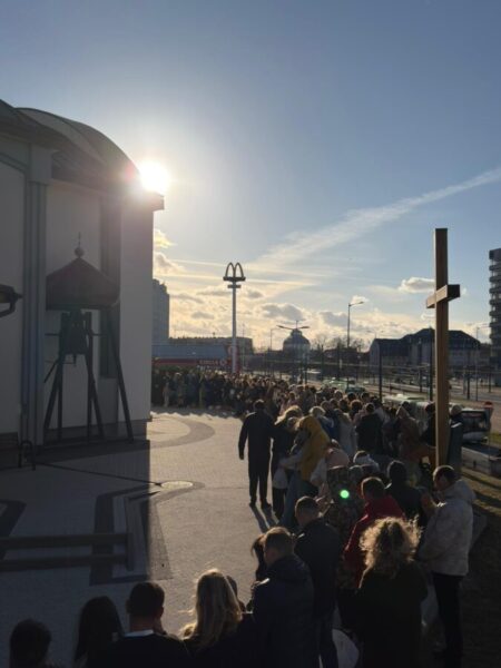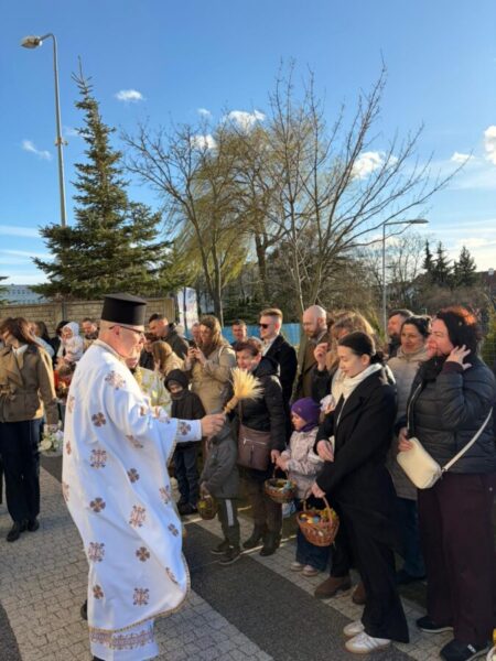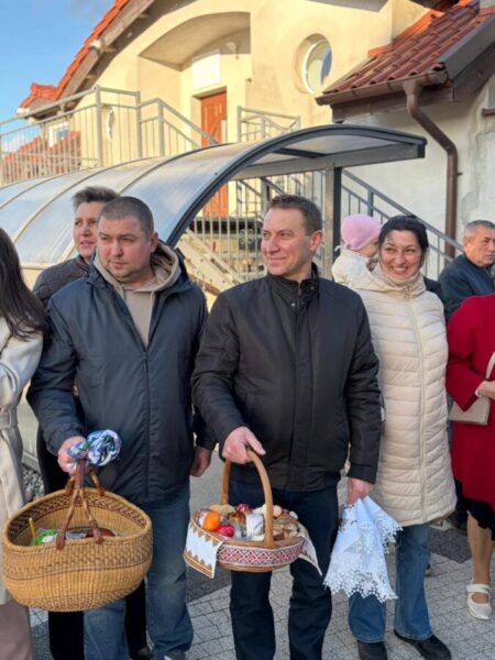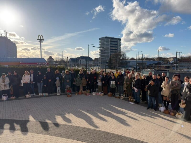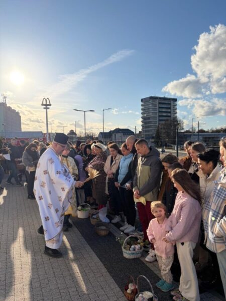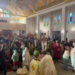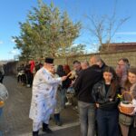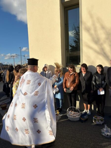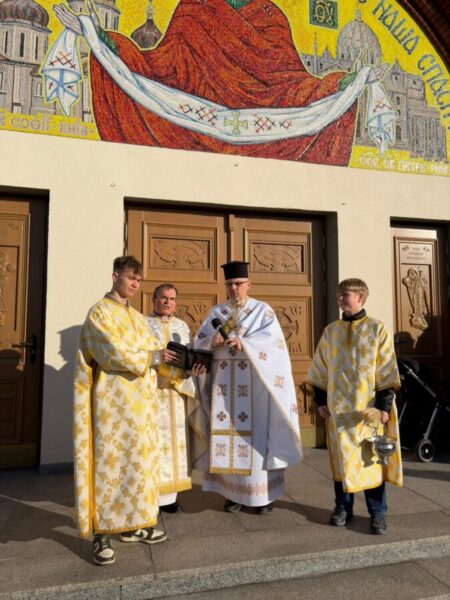 Після богослужіння духовенство разом із вірними вийшли на подвір’я собору, де відбулося освячення пасок та великодніх страв.