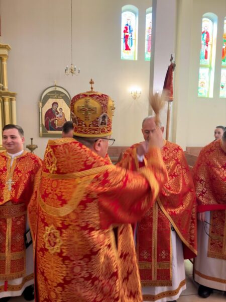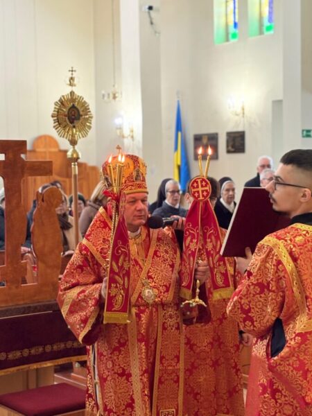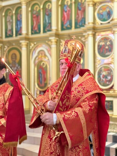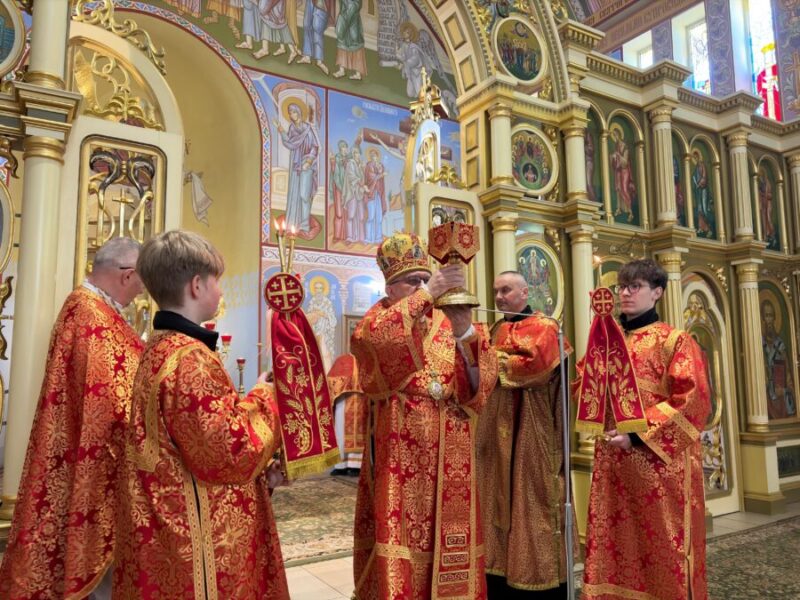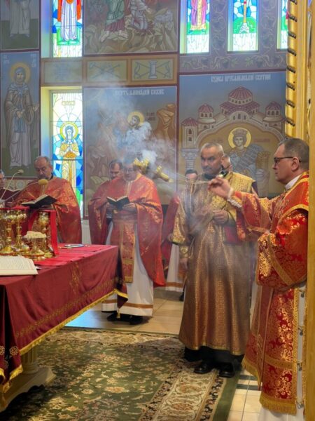 Вечірні, поєднані з архієрейською Божественною Літургією, очолив владика Аркадій у співслужінні священників єпархії, на чолі з протосинкелом, протоієреєм Іваном Галушкa. У спільній молитві особливо виразно звучав зміст цього дня як джерела священничого служіння та єдності пресвітерію довкола Євхаристії.