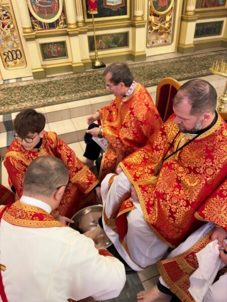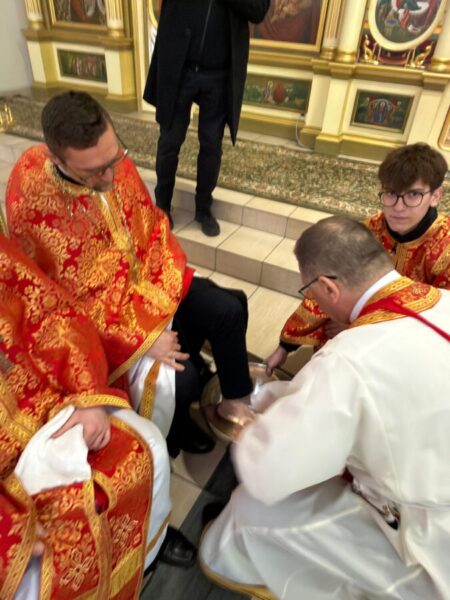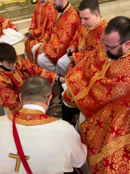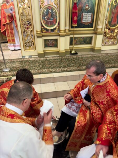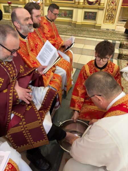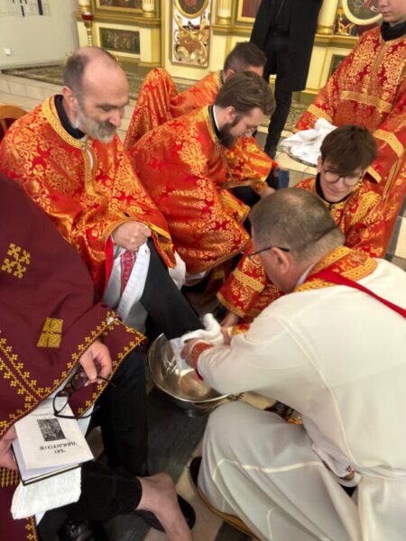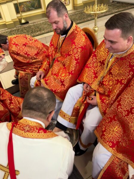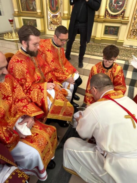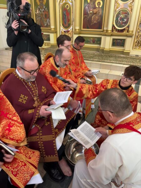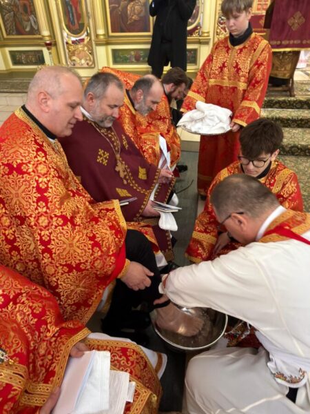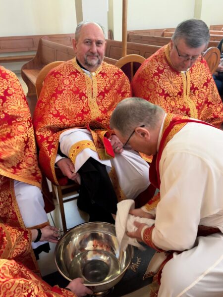 Після завершення Літургії було звершено чин умивання ніг, який відсилає до жесту Христа у Тайній Вечері. Під час цього обряду владика витер ноги дванадцятьом священникам. У чині умивання ніг роль апостола Петра виконав протоієрей Ярослав Ґосьцінський, економ єпархії, якого до цього служіння призначив владика.